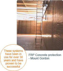 These systems have been in use for over 30 years and have proven to be successful when installed correctly. The type of lining system and materials used can be varied to suit the site and chemical conditions ensuring optimum service life of the product. For all systems, the underlying surface, whether steel or concrete, needs to be properly prepared. This involves grit blasting to provide a mechanical bond between the lining system and substrate. If the concrete has been previously contaminated, pH testing needs to be completed to ensure all contamination is removed. Water content of a concrete surface needs to be measured also to ensure moisture does not affect the overlaid laminate. Special considerations need to be given at expansion joints and at any cracks in a concrete surface. |